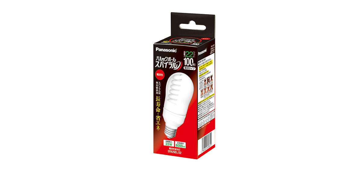 - ライト・照明 > 蛍光灯・電球 > Panasonic パルックボール スパイラル EFA25EL/22 5個セット 概要 パルックボールスパイラル A25形 電球色 EFA25EL22 | LED電球